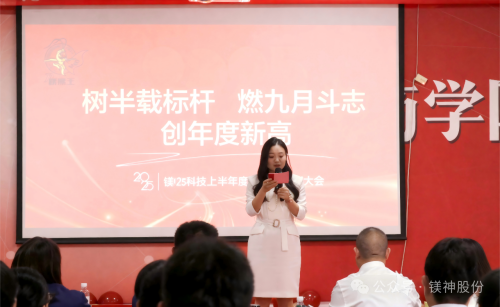 九月金秋,碩果飄香,正是總結過往、蓄力前行的美好時節。2025年9月,河北鎂神科技有限公司2025年上半年度總結暨表彰大會在鎂神商學院盛大召開。全體鎂神人齊聚一堂,以“樹半載標桿燃九月斗志創年度新高”為主題,共同回顧上半年的奮斗征程,見證榜樣的榮耀綻放,擘畫下半年的發展藍圖。