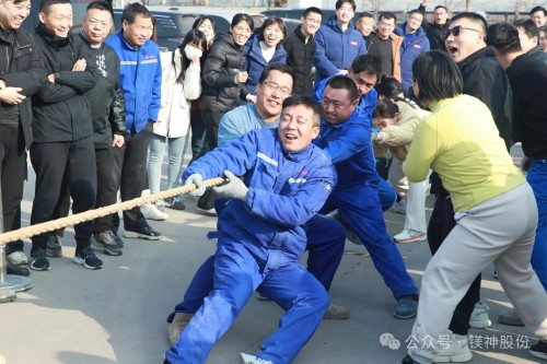 以部門分組建7支戰隊,運動會開始前,各隊成員依次喊出口號,盡顯團結奮進、永爭第一的鎂神風采。矯健的身姿躍動著奮進的活力,傳遞著團結的力量。賽場之上,熱鬧非凡,歡笑與吶喊交織成最動人的樂章。拔河賽場,隊員們緊握長繩、腳蹬大地,心往一處想、勁往一處使,繩索兩端的堅持與拼搏,是鎂神人同心聚力的最佳詮釋。